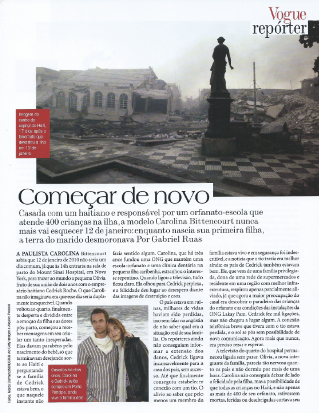 Article covering a couple’s struggles to help recover Haiti after an earth-shattering earthquake.