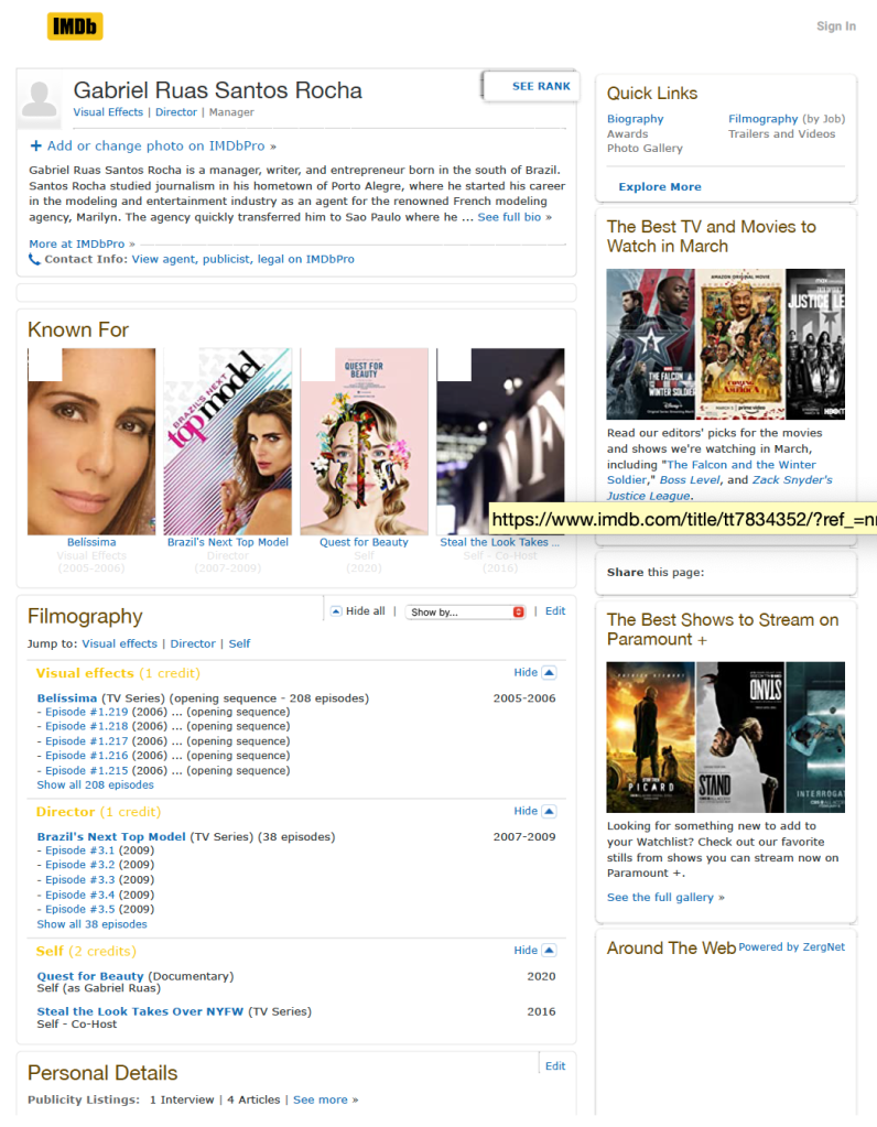 Gabriel’s IMDB page, featuring some of his credits in the moving image world.